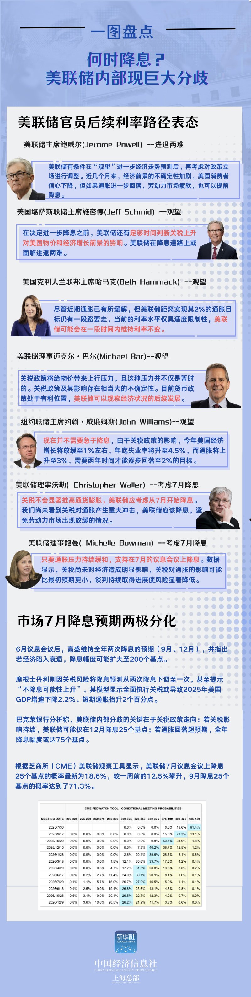 新华财经上海6月25日电(葛佳明) 自美联储6月议息会议决定维持利率不变后,市场普遍认定7月似乎并不是美联储潜在的降息窗口,但本周美联储多位官员密集发声,美联储内部分歧再度显现,市场对于美联储后续降息路径的不确定性加剧。